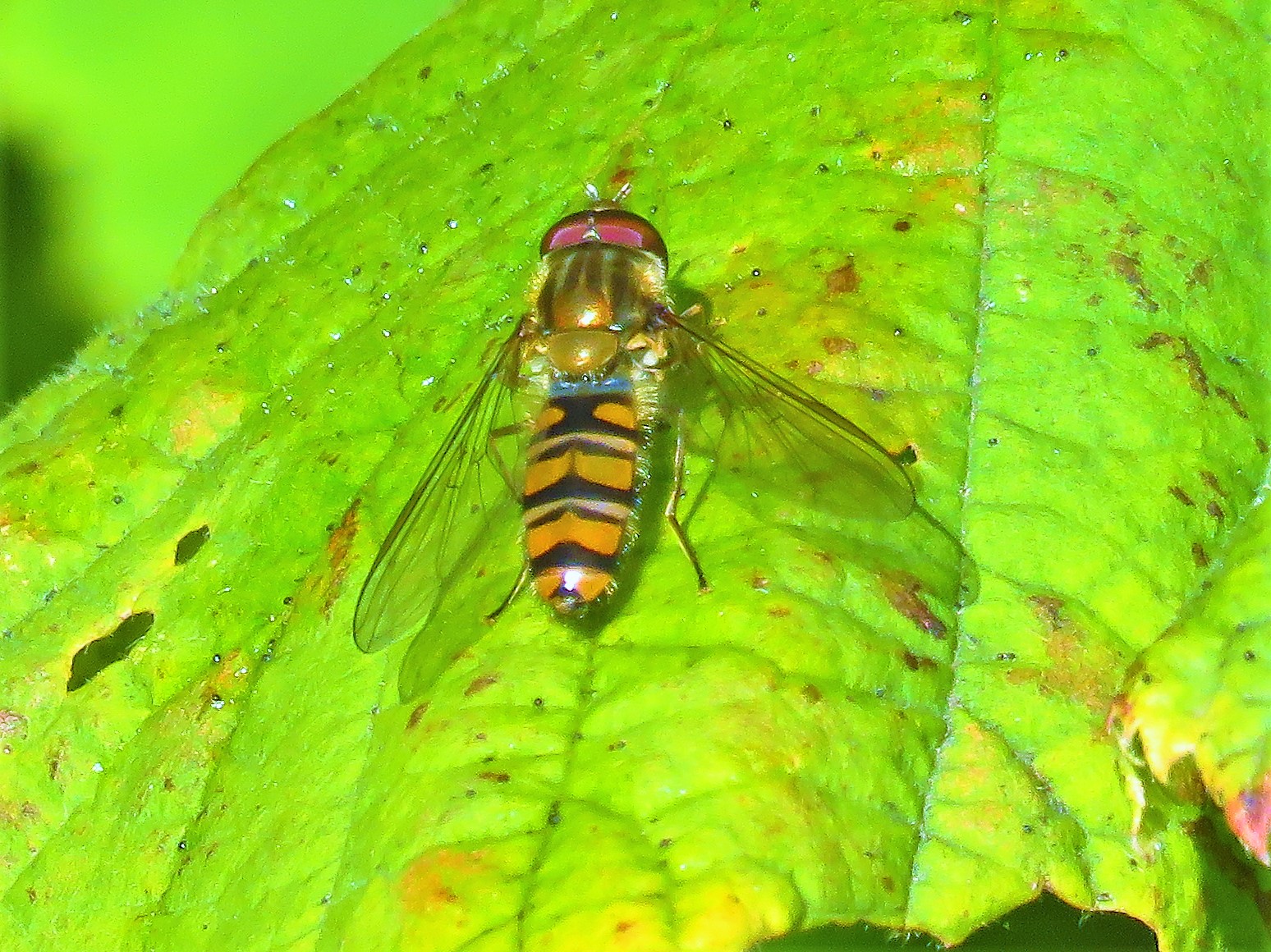 The Episyrphus balteatus (Marmalade hoverfly).