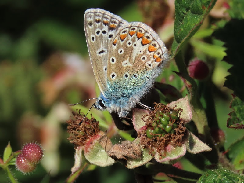 My first Common Blue butterfly (Polyommatus icarus) of the year. A splendid male. Males are much 'bluer' than the Holly Blue. Females have brown upper wings with brown dots.