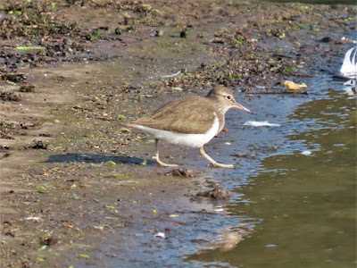- Before 06:00 one of the Common Sandpipers was calling loudly while doing its circular display flight at the W end. Later it was just calling and chasing one of the others. I cannot recall seeing display here previously.